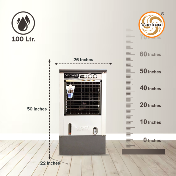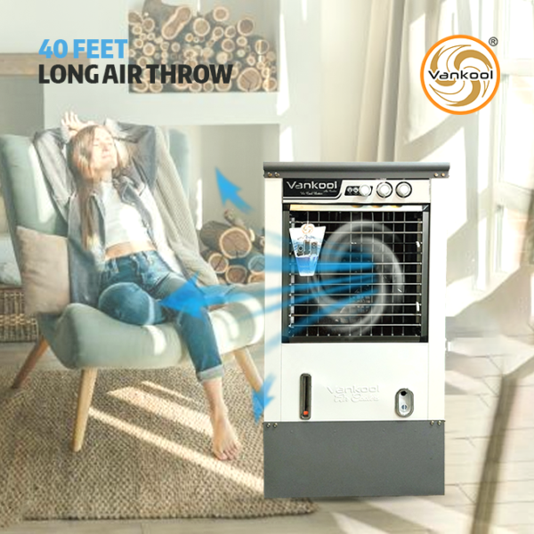 The Vankool 501 AS features an advanced cooling system with a sturdy metal body, 100L water capacity, and honeycomb cooling pads. Designed for high-performance desert cooling, it delivers effective air flow and long-lasting durability with manual control.