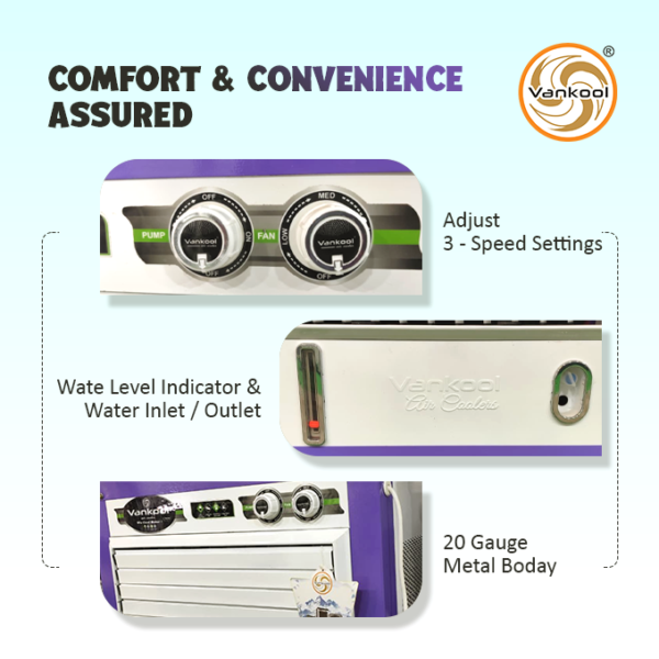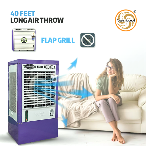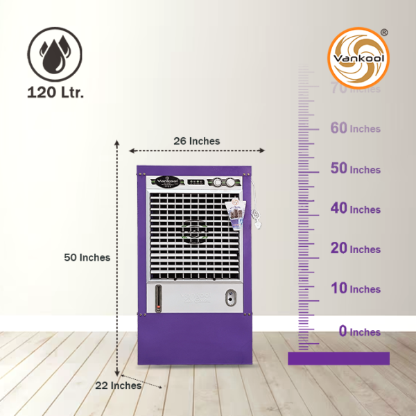 The Vankool 501 XL metal cooler is designed for efficient cooling performance with a 120-litre capacity and robust powder-coated metal body. With honeycomb cooling pads and 4-way air deflection, it delivers refreshing air coverage suitable for rooms needing powerful and durable cooling solutions.