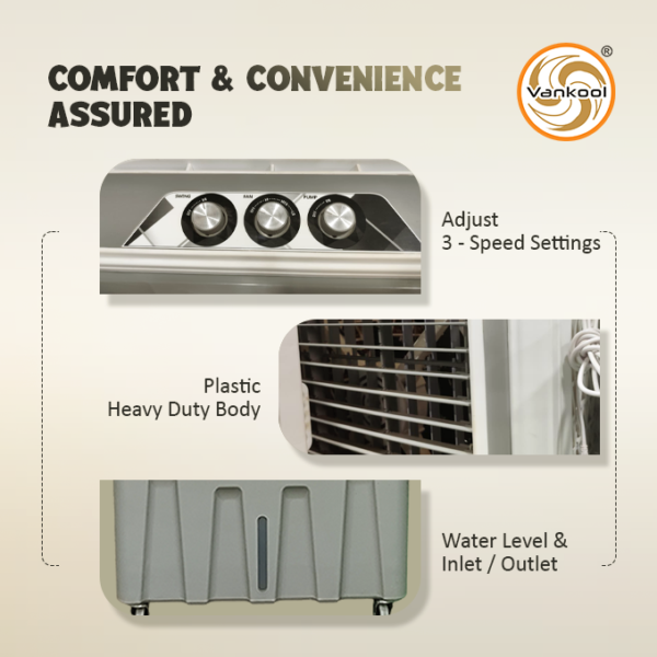 Vankool Model 701 Plastic Air Cooler 150L – Hi-End Plastic Desert Cooler with Honeycomb Pads for Outdoor & Large Rooms