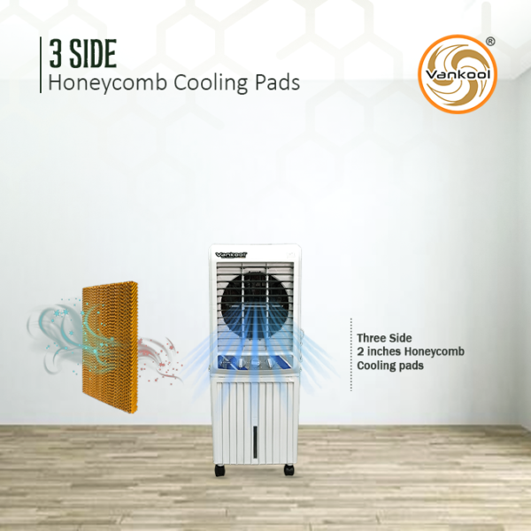 - Back-side honeycomb pads for efficient and quick cooling with low water use.