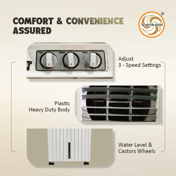 Vankool Model 705 PRMR Plastic Desert Air Cooler 110L with Stand – Premium Regular Plastic Cooler for Rooms